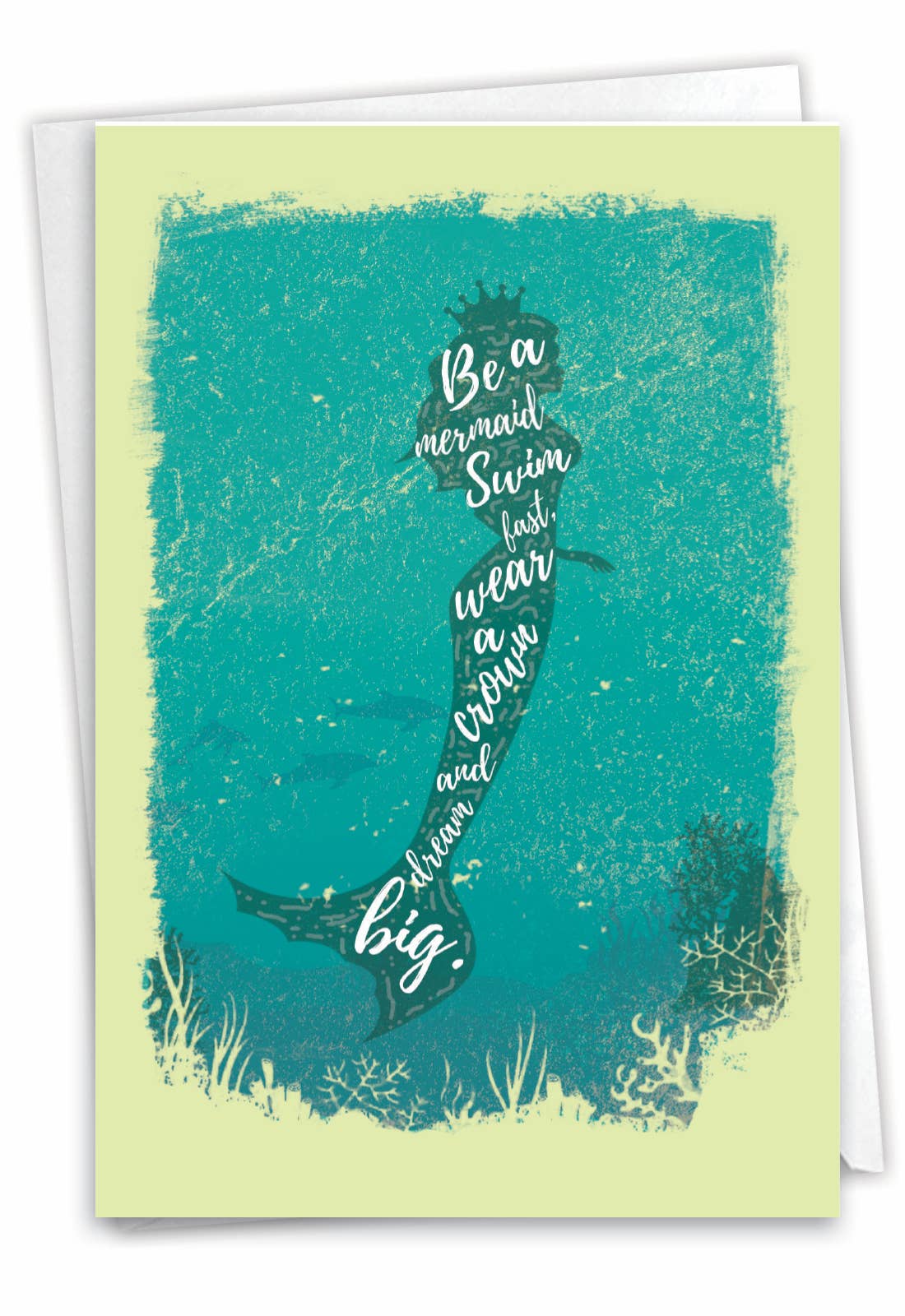 Cover Text: Be a mermaid swim fast, wear a crown and dream big. Inside Text: Happy Birthday to someone special!