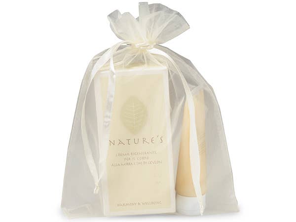 Organza bags are elegant, decorative & versatile. Our sheer bags are made of nylon, which gives them a beautiful shine, and have a matching drawstring made from petite satin ribbon. These sheer bags are ideal for basket stuffers, soaps, candles, sachets, jewelry, cosmetics, party favors and are excellent resale items. Bags are imported, 100% nylon and pvc free. Bags are hand sewn, colors and size may vary slightly from shipment to shipment.