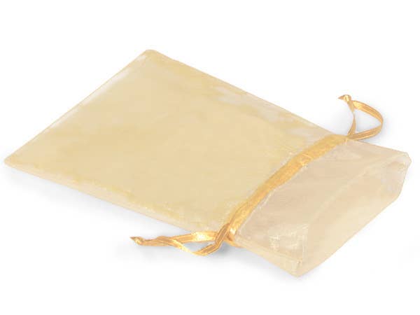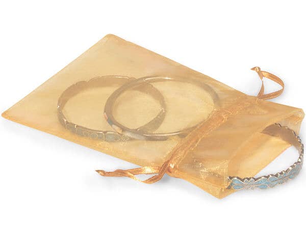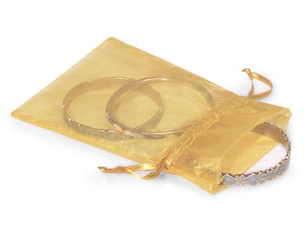 Organza Sheer Drawstring Bags: Gold / 10 Pack / 4x6"