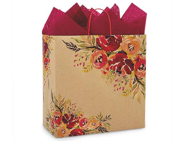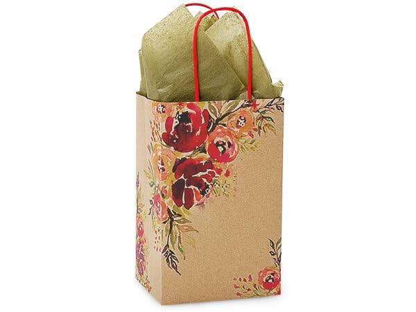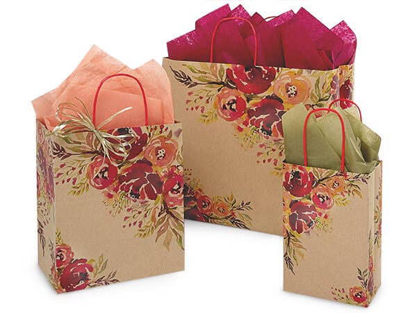 Romantic Blooms Kraft Paper Gift Bags: 25 Pack / Cub 8x4.75x10"